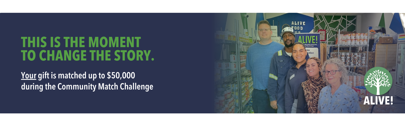 Founded in 1969, ALIVE! is the oldest and largest nonprofit serving Alexandrians facing food insecurity and housing instability. With support from 50 interfaith congregations, thousands of volunteers, and caring neighbors, ALIVE! helps more than 20,000 people each month access groceries, financial assistance, and other essential support.